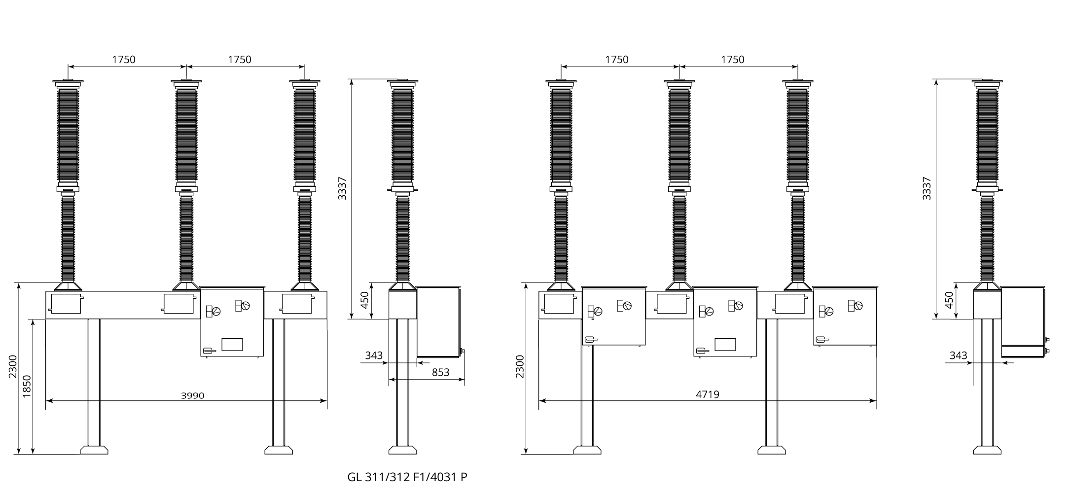 • Circuit breaker with individual drives for each pole partially assembled before delivery (base with mounted and wired drives)